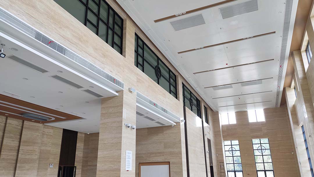經(jīng)惠聲專(zhuān)業(yè)設(shè)計(jì)的六樓大會(huì)議室,現(xiàn)場(chǎng)音響采用明裝壁掛式:主要包括主擴(kuò)、輔助環(huán)繞、舞臺(tái)低音以及舞臺(tái)返聽(tīng)音箱。保證聲音輻射范圍全面覆蓋,做到美觀大方。調(diào)音臺(tái)采用了多路多編組數(shù)字調(diào)音臺(tái),編組輸出可分出音源實(shí)可供給遠(yuǎn)程視頻會(huì)議、錄音機(jī)、刻錄機(jī)等設(shè)備。麥克風(fēng)選用VS-1302M真分集主機(jī),配備手持、頭戴等多種類(lèi)型可選。外加天線(xiàn)放大器極大地延長(zhǎng)了話(huà)筒的傳輸距離。另外我們還在大會(huì)議室設(shè)計(jì)了智能集中控制系統(tǒng),集合了聲、光、電于一體的掌上控制系統(tǒng),使用者可通過(guò)平板上面的按鍵控制燈光開(kāi)關(guān)、電動(dòng)窗簾、空調(diào)開(kāi)啟、電視機(jī)開(kāi)關(guān)、聲量大小調(diào)節(jié)等。同時(shí)添加了更多可視化的操作,讓大會(huì)議室的使用變得更佳智能化。