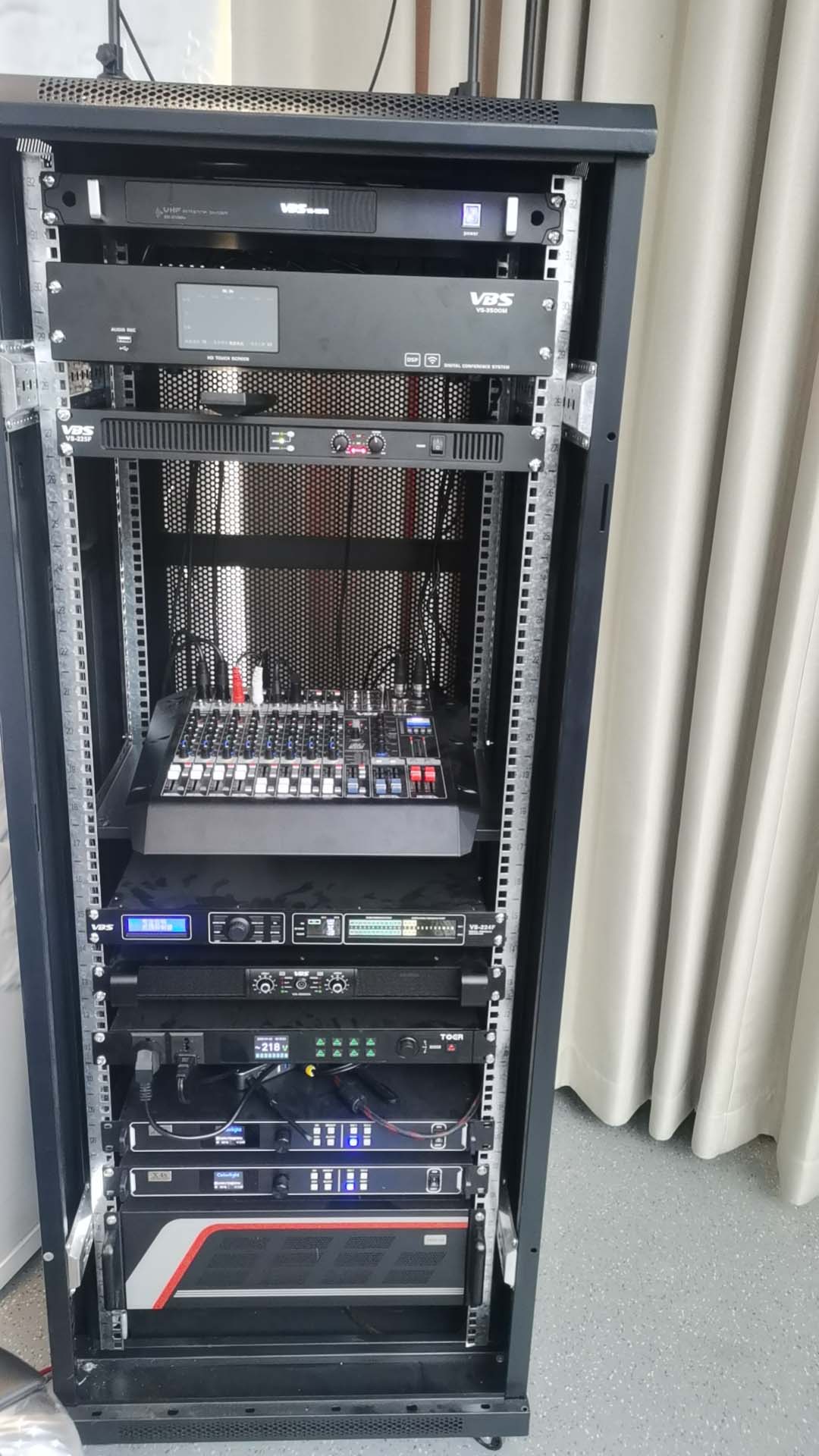 根據(jù)局里兩間會議室的使用需求以及整體的美觀度上考慮,廣州惠聲擴聲系統(tǒng)設計的音箱選型分別采用壁掛式音箱與音柱,配置無線會議發(fā)言話筒,該話筒采用全數(shù)字會議技術,長距離傳輸對音質不會有任何影響。話筒具備多種發(fā)言模式,適用于不同的會議發(fā)言需求。同時配置話筒增益處理器使得發(fā)言話筒具備更遠的拾音距離,而且話筒增益處理器還具備防嘯叫功放,即使多個話筒同時發(fā)言,也不會出現(xiàn)嘯叫現(xiàn)象。會議室同時還配置調音臺、反饋抑制器、功放、電源時序器等周邊設備,使得會議室的會議