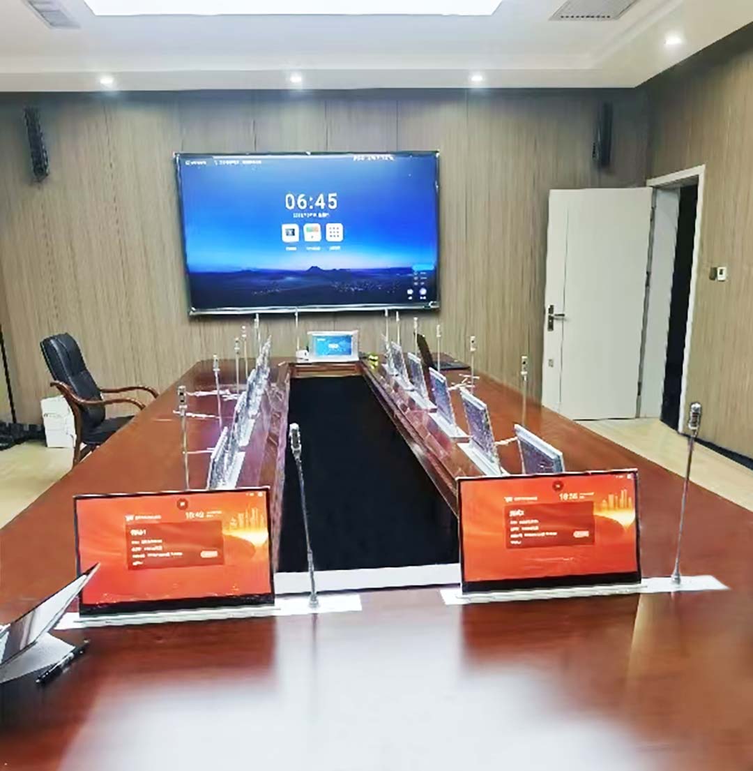 惠聲設(shè)計了全套專業(yè)無紙化系統(tǒng)。包括集中控制系統(tǒng)、無線電子桌牌系統(tǒng),共有15個會議終端屏顯。會議文字資料以電子版的形式進(jìn)行共享、交互批注和交流,無紙化升降屏為觸屏,無需繁瑣笨拙的鍵盤,所有操作只需在顯示屏進(jìn)行,既能實現(xiàn)簡單的操作,又可以達(dá)到綠色環(huán)保不浪費紙張。按客戶要求升降終端既可以做本地會議,又能訪問內(nèi)部系統(tǒng)參與會議,實現(xiàn)一機(jī)兩用。系統(tǒng)采用全新的會議模式,將傳統(tǒng)會議過程中的各個環(huán)節(jié)虛擬化、主體信息和承載介質(zhì)數(shù)字化,將多種信息化技術(shù)融入會議的各環(huán)節(jié)、貫穿會議全過程,將頻繁召開的會議全部“搬”上無紙化會議平臺,管理者在更短時間內(nèi)完成多于以往的任務(wù)。更能達(dá)到會議的互聯(lián)、互通、互動的高效會議場景。無紙化會議系統(tǒng)實現(xiàn)會議同步閱讀、會議簽到、會議信息、會議紀(jì)要、投票表決、電子白板、資料批注等多種功能,為客戶提供一個極為實用的會議平臺。通過這個平臺,各部門單位可進(jìn)行實時有效的信息溝通。改變了傳統(tǒng)會議模式的效率低、操作復(fù)雜、形式單一、資源浪費、保密隱患等問題,實現(xiàn)會議的全程無紙化概念。會議室集中控制系統(tǒng)可統(tǒng)一控制會議室設(shè)備,實現(xiàn)一鍵開啟會議、一鍵關(guān)閉會議,大大提高會場管理人員的工作效率。配套無線電子桌牌系統(tǒng),用于電子銘牌顯示,取代了傳統(tǒng)塑料、紙質(zhì)或銅制桌牌,是會議桌面顯示設(shè)備的一大創(chuàng)新。本產(chǎn)品與傳統(tǒng)桌牌相比,具有信息化程度高、可反復(fù)使用的特點。