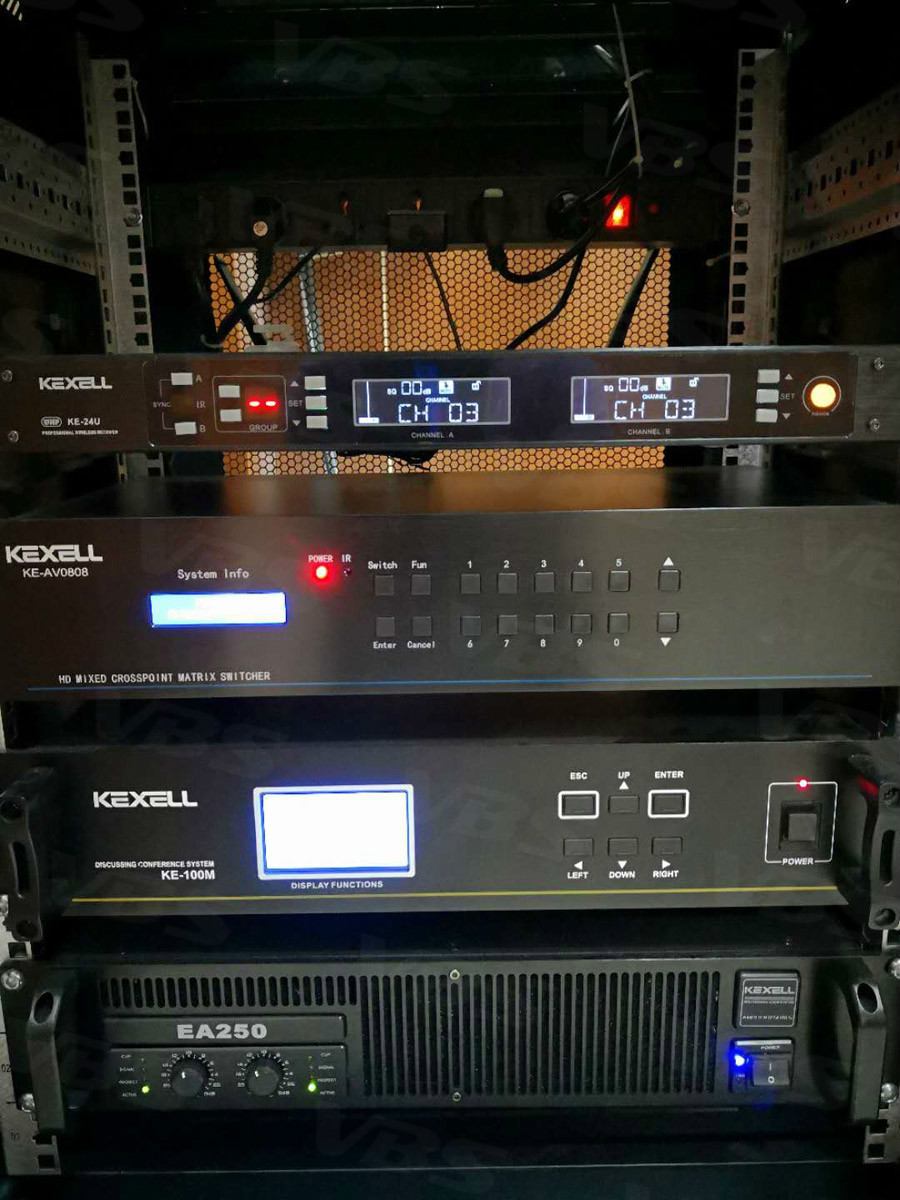 甘肅省隴南市成縣公安局會(huì)議室,選用4只由4個(gè)4寸全頻單元組成的專(zhuān)業(yè)線性音柱,每只音箱功率為200W,完全滿足現(xiàn)場(chǎng)的聲壓級(jí);音源拾取選用2.4G無(wú)線一拖八會(huì)議發(fā)言系統(tǒng),此系統(tǒng)更具有保密性和穩(wěn)定性,及無(wú)線會(huì)議話筒不收傳統(tǒng)設(shè)備線路限制,移動(dòng)講話更方便,周邊的調(diào)控設(shè)備調(diào)音臺(tái)是系統(tǒng)不可或缺的組成,使我們的聲色更加圓滑、降低環(huán)境噪音、及保護(hù)系統(tǒng)設(shè)備用電,使音頻設(shè)備工作起來(lái)更加穩(wěn)定。