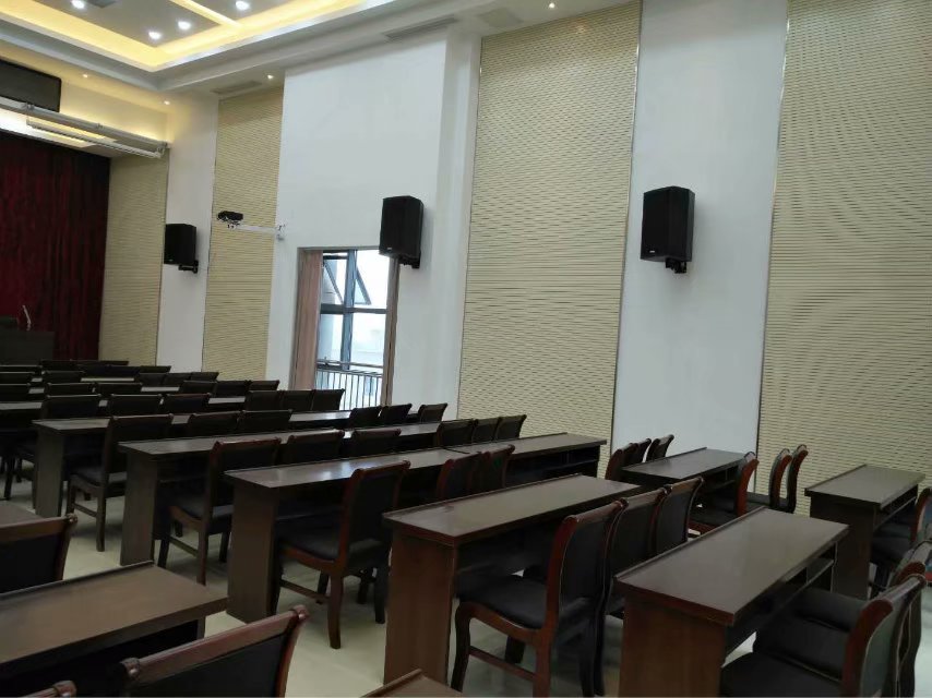 專業(yè)音箱安裝在報(bào)告廳四周,不但美觀而且實(shí)用,補(bǔ)充了主擴(kuò)音箱因?yàn)榫嚯x而達(dá)不到的地方。
