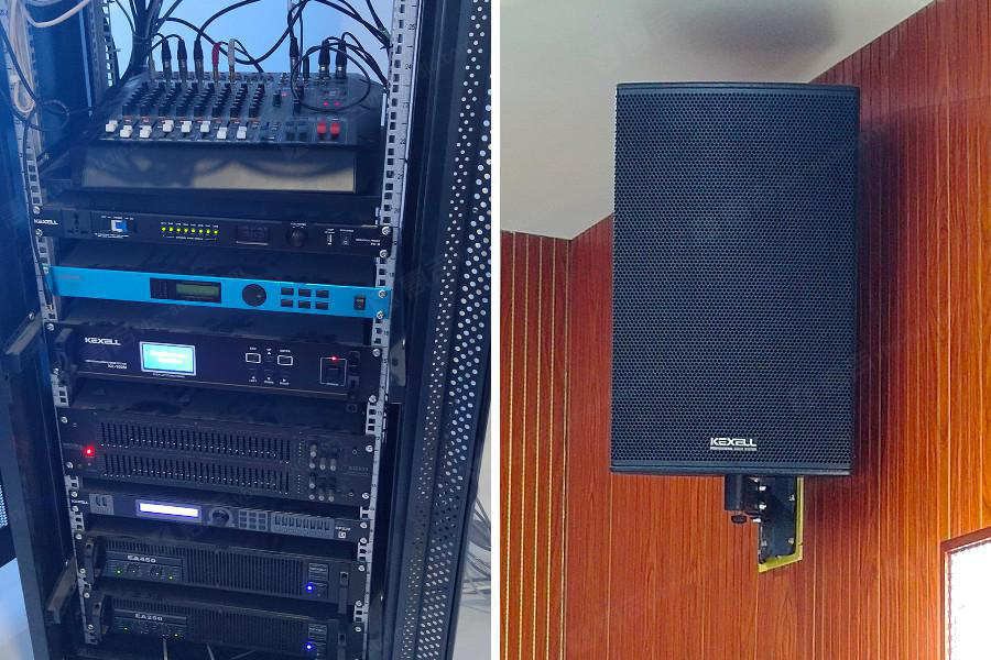 ▲機(jī)房設(shè)備機(jī)柜、全頻專業(yè)音箱