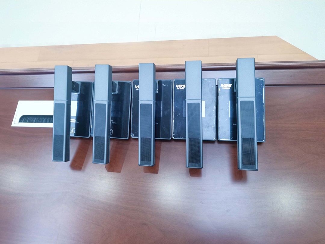 5、無線會(huì)議話筒:選擇具有高品質(zhì)音質(zhì)、低延遲、強(qiáng)抗干擾能力的無線會(huì)議話筒。例如,采用FM頻段的無線話筒,其抗干擾能力相對(duì)更強(qiáng)。多種會(huì)議模式:FIFO(先進(jìn)先出模式)、APPLY(申請(qǐng)模式)、FREE(自由模式)、LIMIT(限制模式)可根據(jù)會(huì)議室的規(guī)模和需求,選擇模式。無線會(huì)議話筒系統(tǒng),以滿足不同規(guī)模的會(huì)議需求??沙潆娫O(shè)計(jì):選擇具有可充電鋰電池的無線話筒,減少更換電池的麻煩,并確保長時(shí)間的使用時(shí)間。