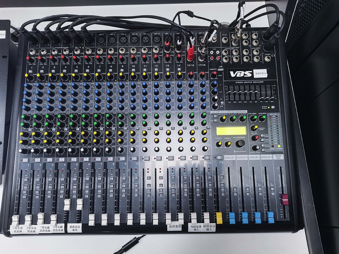 4、調(diào)音臺(tái):選用16路4編組的調(diào)音臺(tái),支持U盤等音樂的播放。調(diào)音臺(tái)應(yīng)具備高精度效果調(diào)節(jié)、單獨(dú)48V幻象供電開關(guān)等功能,方便用戶進(jìn)行精細(xì)的音頻調(diào)節(jié)。