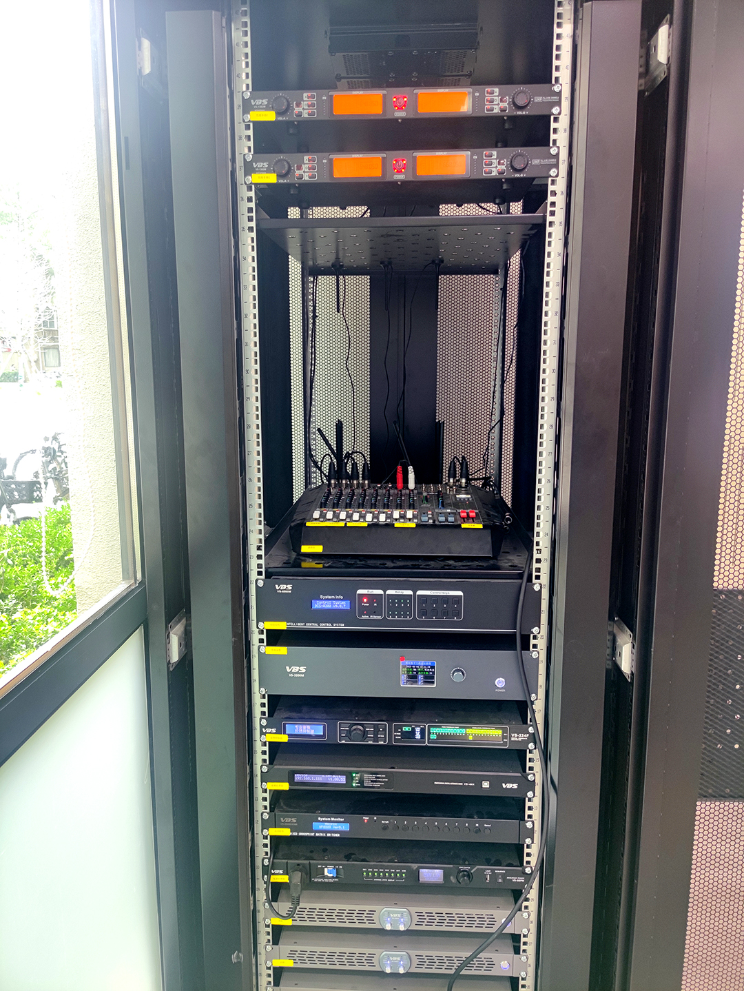 中控系統(tǒng):報(bào)告廳采用VS-5500M智能中控設(shè)備,提供平板、手機(jī)APP控制,操作界面簡(jiǎn)潔。用戶可方便對(duì)音頻、視頻、燈光等設(shè)備進(jìn)行集中管理調(diào)控。通過(guò)系統(tǒng)集成方式,管理員可以遠(yuǎn)程調(diào)控設(shè)備,降低人為操作失誤的可能性,確保活動(dòng)的順利進(jìn)行。