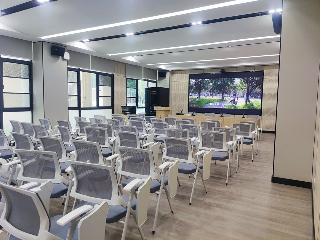 專業(yè)擴(kuò)聲系統(tǒng):在報(bào)告廳的擴(kuò)聲設(shè)計(jì)中,我們選擇了VS-108專業(yè)會(huì)議揚(yáng)聲器和功放設(shè)備,通過(guò)均衡的布置音響,確保聲音覆蓋范圍廣且均勻,避免任何死角。特別在座位分布不均的環(huán)境下,優(yōu)化了音響陣列,確保無(wú)論是主講人講解還是小組討論,聲音都能準(zhǔn)確傳遞到每一位聽(tīng)眾。