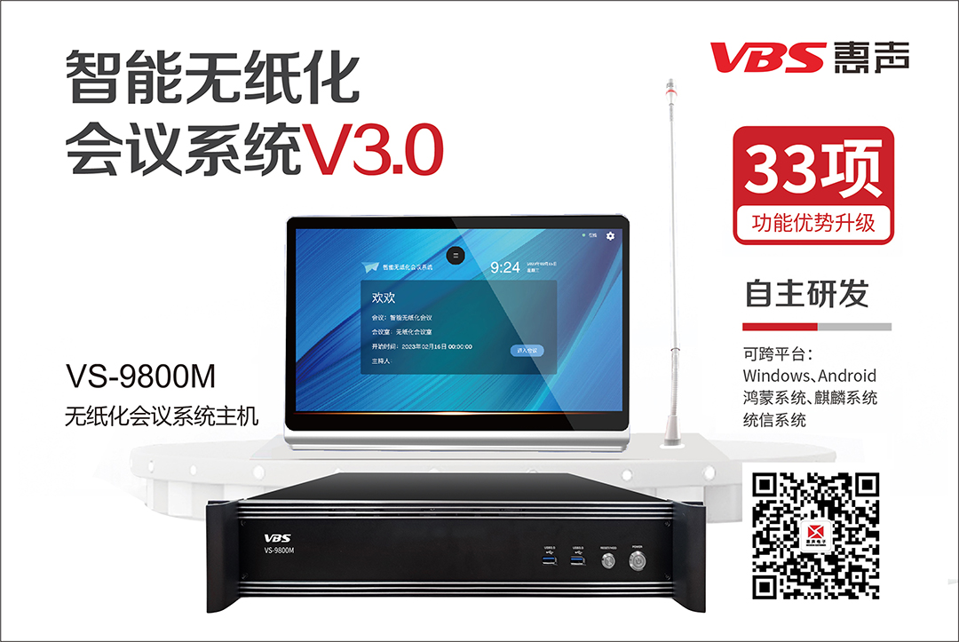 VBS惠聲自主研發(fā)的智能無紙化會(huì)議系統(tǒng)支持會(huì)議室管理、會(huì)議管理、參會(huì)人員管理,同時(shí)支持會(huì)議預(yù)約審批管理、可開啟多場(chǎng)會(huì)、會(huì)后資料保存、歷史會(huì)議管理等。參會(huì)人員可分組進(jìn)行管理,支持參會(huì)人員的銘牌的新建與編輯、模擬排位、簽到統(tǒng)計(jì);支持會(huì)議議程的預(yù)設(shè)、支持會(huì)議議題的創(chuàng)建及會(huì)議資料上傳下載、支持會(huì)議投票的新建及統(tǒng)計(jì)、支持會(huì)議消息的管理及會(huì)議通知的發(fā)布、支持接收終端會(huì)議服務(wù)的請(qǐng)求、支持集中控制終端的界面跳轉(zhuǎn)及開關(guān)機(jī)等、支持實(shí)時(shí)監(jiān)測(cè)終端聯(lián)機(jī)狀態(tài)及電量使用情況等、支持參會(huì)人員交豆等,本系統(tǒng)是一體化全方面的智能無紙化會(huì)議系統(tǒng)。