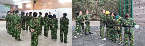 青山綠水間,統(tǒng)一著裝,進行攀巖、運桶、泰山繩、吊裝行走、障礙翻越等項目訓(xùn)練,