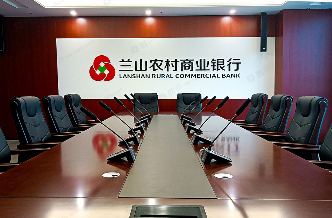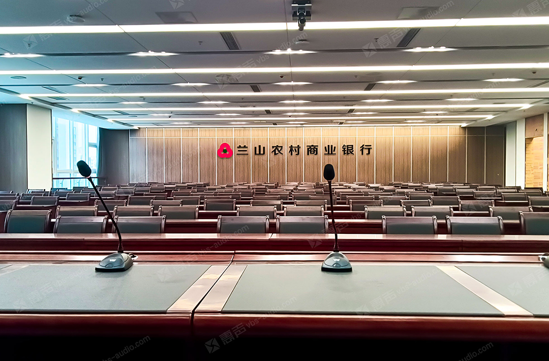 蘭山農(nóng)村商業(yè)銀行大廈工程總建筑面積近10萬平方米,共33層。其中第5層建有多媒體會議室1間和大會議室1間;第6層指揮中心會議室1間;第26層大會議室1間,小會議室1間;第27層大會議室1間,小會議室1間。為滿足蘭山農(nóng)村商業(yè)銀行領導、客戶日常的本地會議和視頻會議的需求,廣州惠聲專業(yè)設計了分布式、無紙化、會議擴聲于一體的音視頻系統(tǒng),采用高性價比的設備,為銀行大廈的工作人員營造更高效舒適的會議辦公環(huán)境。