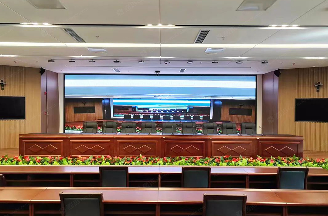會議擴聲系統(tǒng)主要由音源、音頻處理設備、功放以及音箱組成。每個會議室按照實際情況配置不同大小尺寸功率的音箱,再通過調(diào)節(jié)音頻處理器,減少會場的回音延時,保證聽眾席有足夠的聲壓級和良好的聲音清晰度。會議室分布式中控系統(tǒng)僅通過一臺ipad就可統(tǒng)一管理會場的音量大小、無紙化終端的升降、視頻源的切換等操作,客戶使用起來更靈活方便,無需專業(yè)培訓。分布式系統(tǒng),打破物理位置限制,實現(xiàn)多個房間的音視頻信號互聯(lián)互通;大屏鏡像功能也滿足了與會人員共享一塊屏幕的需求;另外網(wǎng)絡化的音頻系統(tǒng)互通功能,可實現(xiàn)人員在不同會議室之間實時組團參會。分布式系統(tǒng)不僅提高了會議室的使用效率,還同時簡化了管理,實現(xiàn)了一人管理多間會議室等功能。