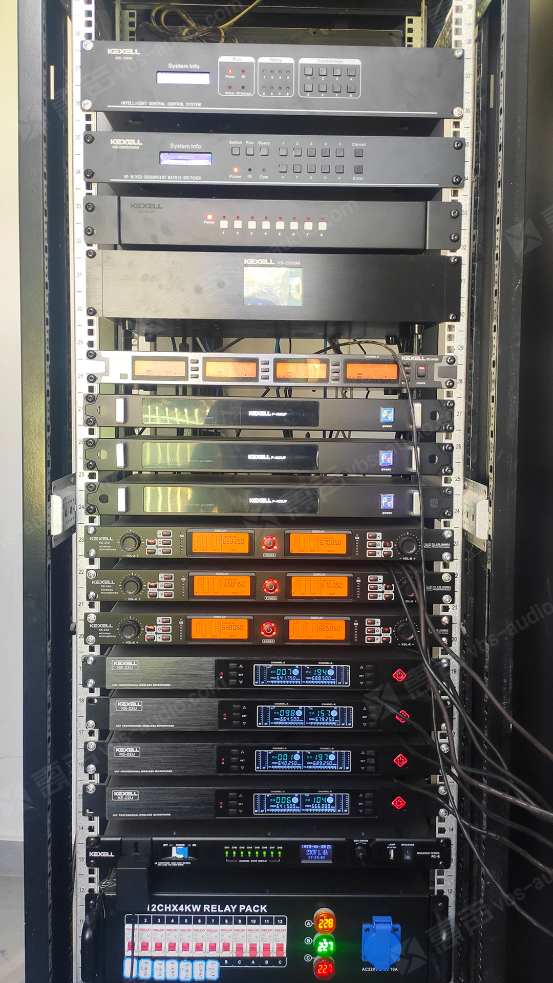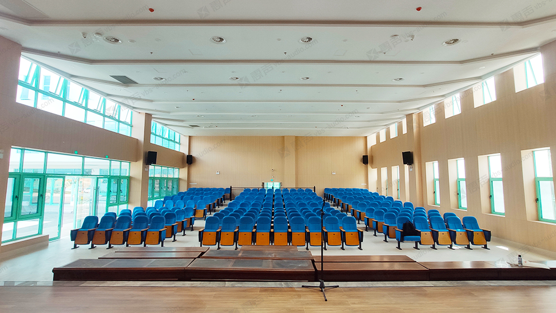 報(bào)告廳采用明裝壁掛式箱體大尺寸單元音箱,優(yōu)雅的美學(xué)設(shè)計(jì),滿足最苛刻的安裝要求,保證聲音輻射范圍全面覆蓋,美觀大方。另外還安排了兩只低音音響烘托氣氛,與舞臺(tái)燈光交相配合。麥克風(fēng)配置了頭戴、領(lǐng)夾、座式、手持四種方式,滿足任何情況下的發(fā)言需要,采用編組調(diào)音臺(tái),多路編組輸出可分出音源供給遠(yuǎn)程視頻會(huì)議、錄播主機(jī)等設(shè)備。實(shí)現(xiàn)音源分類,有效的阻斷回聲。錄播采用多機(jī)位錄制的形式,以主席特寫和觀眾席特寫跟蹤為主,全景為輔。能有效的將學(xué)術(shù)報(bào)告以視頻的形式長久保留下來。