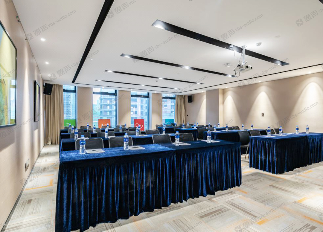 杭州希爾頓歡朋酒店功能廳建設(shè)需要會(huì)議擴(kuò)聲系統(tǒng),滿足客人日常的會(huì)議、培訓(xùn)等需求,聲場(chǎng)需要覆蓋整個(gè)多功能廳,保證聲音覆蓋全場(chǎng),聲音還原度高。