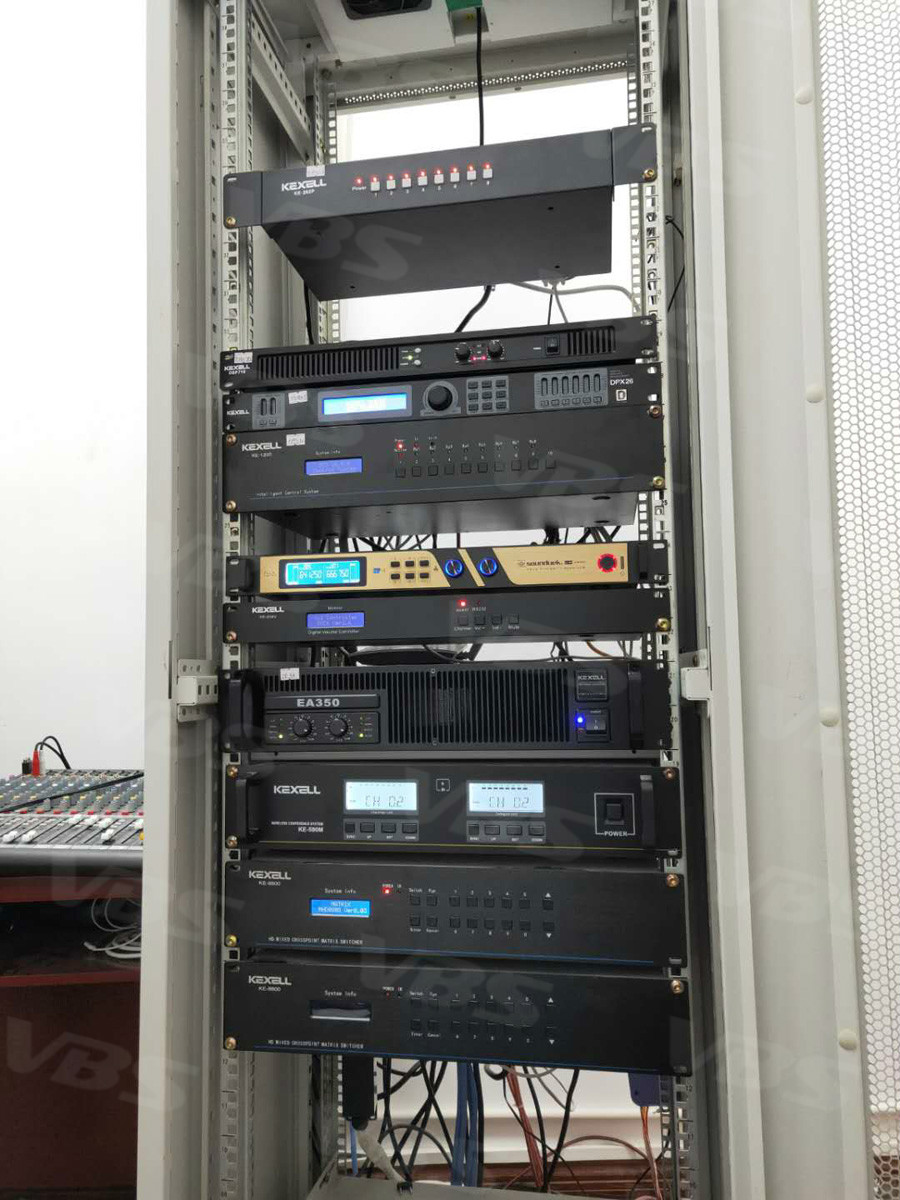 基于會議室需要滿足的功能和客戶需求,現(xiàn)配單方案如下:專業(yè)功放EA350一臺;調(diào)音臺EX16一臺;線性音柱TH404四只;專業(yè)有源低音音箱TH-12SW兩只;音頻處理器DSP26一臺;無線會議KE-590一套;中控主機KE-1200一臺;電源控制器KE-202P一臺;音量控制器KE-204V一臺;話筒增益器KE-710一臺;高清混插矩陣KE-8800兩臺。