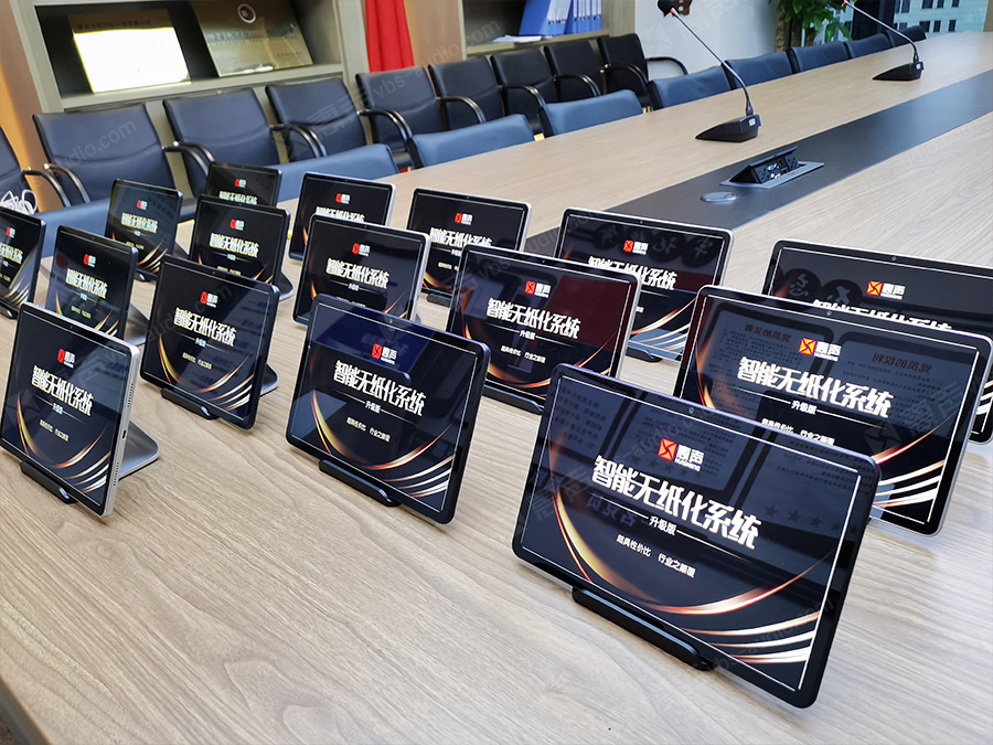 根據(jù)芳園公司黨建會(huì)議室的使用需求,為初步實(shí)現(xiàn)智能會(huì)議室,惠聲根據(jù)黨建會(huì)議室的布局,在會(huì)議室每個(gè)座位設(shè)計(jì)1臺(tái)平板無(wú)紙化終端/共16臺(tái)。達(dá)到智能便捷的效果之余,保持桌面整潔美觀。