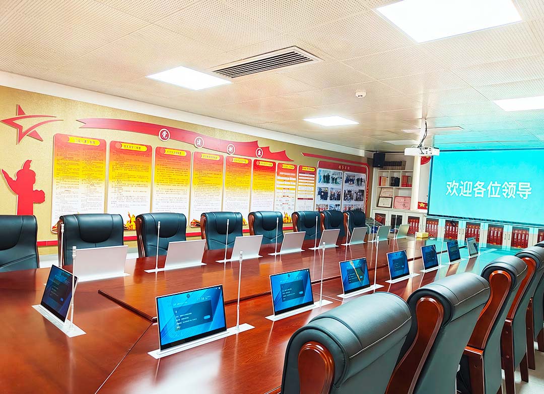 惠聲設(shè)計(jì)了全套專業(yè)無(wú)紙化系統(tǒng)。會(huì)議文字資料以電子版的形式進(jìn)行共享、交互批注和交流。無(wú)紙化升降屏為觸屏,無(wú)需繁瑣笨拙的鍵盤,所有操作只需在顯示屏進(jìn)行,既能實(shí)現(xiàn)簡(jiǎn)單的操作,又可以達(dá)到綠色環(huán)保不浪費(fèi)紙張。按客戶要求升降終端既可以做本地會(huì)議,又能訪問內(nèi)部系統(tǒng)參與會(huì)議,實(shí)現(xiàn)一機(jī)兩用。系統(tǒng)采用全新的會(huì)議模式,將傳統(tǒng)會(huì)議過(guò)程中的各個(gè)環(huán)節(jié)虛擬化、主體信息和承載介質(zhì)數(shù)字化,將多種信息化技術(shù)融入會(huì)議的各環(huán)節(jié)、貫穿會(huì)議全過(guò)程。將頻繁召開的會(huì)議全部“搬”上無(wú)紙化會(huì)議平臺(tái),管理者在更短時(shí)間內(nèi)完成多于以往的任務(wù)。更能達(dá)到會(huì)議的互聯(lián)、互通、互動(dòng)的高效會(huì)議場(chǎng)景。