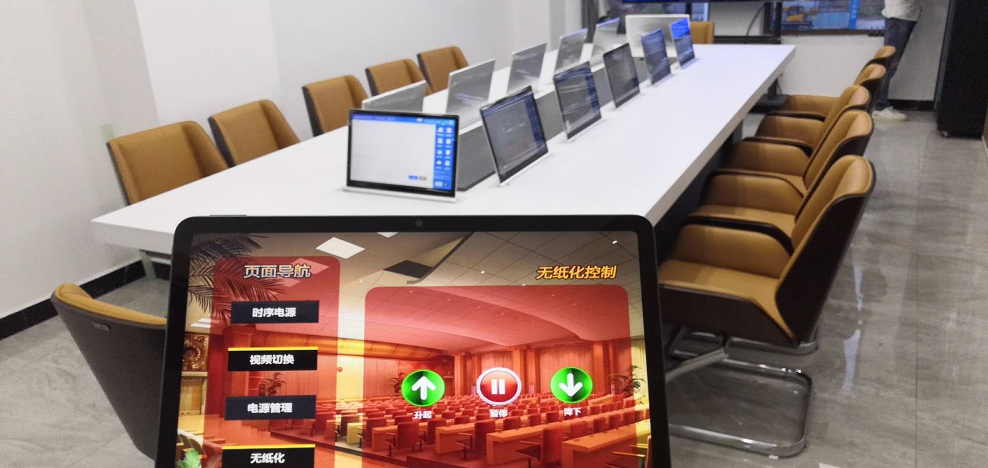 便捷性和先進(jìn)性是婁星區(qū)政務(wù)服務(wù)中心對會(huì)議系統(tǒng)的要求,為滿足這一要求,惠聲電子特意設(shè)計(jì)了一套無紙化會(huì)議系統(tǒng)解決方案,并配合實(shí)現(xiàn)會(huì)議室的聲音調(diào)取,營造高效智能的會(huì)議環(huán)境。