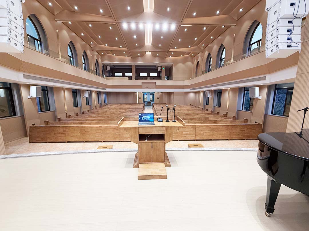 使用惠聲專業(yè)擴(kuò)聲系統(tǒng)能夠使教堂的音響設(shè)備更加現(xiàn)代化,并為教堂的宗教活動(dòng)增添技術(shù)感和專業(yè)感。也能有效減少外界噪音的干擾,使得音頻內(nèi)容更加純凈、清晰。顯著提升音質(zhì)與音效體驗(yàn),確保教堂內(nèi)音頻的覆蓋范圍和清晰度,幫助演講者、牧師、歌手等優(yōu)化表現(xiàn),增強(qiáng)信徒的參與感和宗教活動(dòng)的氛圍。通過現(xiàn)代化的音響技術(shù),教堂能夠提供更具吸引力和專業(yè)感的宗教服務(wù),進(jìn)一步推動(dòng)教堂活動(dòng)的開展。