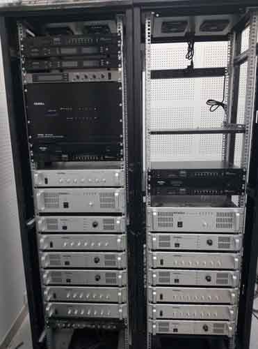 鴻源NBA中心廣場經(jīng)常性使用為體育比賽或群眾集會、活動娛樂,為滿足大型體育比賽活動、場館各區(qū)域的使用需要,首先要保證語言擴(kuò)聲的清晰度。系統(tǒng)配備完善的處理設(shè)備(如調(diào)音臺,音頻處理矩陣),易操作、易管理,提供良好的操作界面,方便操作,提高系統(tǒng)管理能力,使能得心應(yīng)手的進(jìn)行操作,音箱的合理分布,使整個(gè)聲場達(dá)到極佳效果。