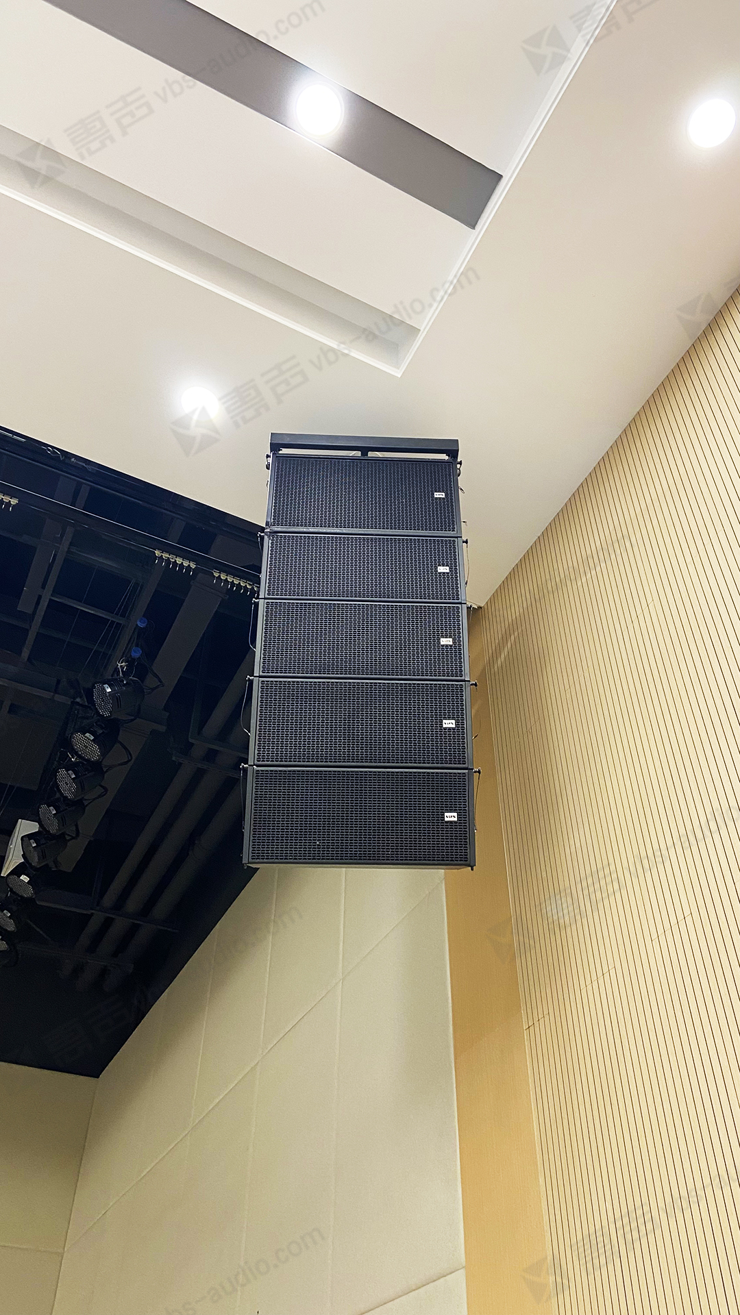 3、擴(kuò)聲音箱前場(chǎng)采用4+1線陣音箱組合作為主擴(kuò)音箱,中場(chǎng)還設(shè)有2只補(bǔ)聲音箱,舞臺(tái)前場(chǎng)裝有嵌入式臺(tái)唇音箱,以及舞臺(tái)上擺放返聽音箱。音箱實(shí)現(xiàn)覆蓋均勻、擴(kuò)散度好、聲壓級(jí)大、指向性好、遠(yuǎn)近場(chǎng)的區(qū)別較小。