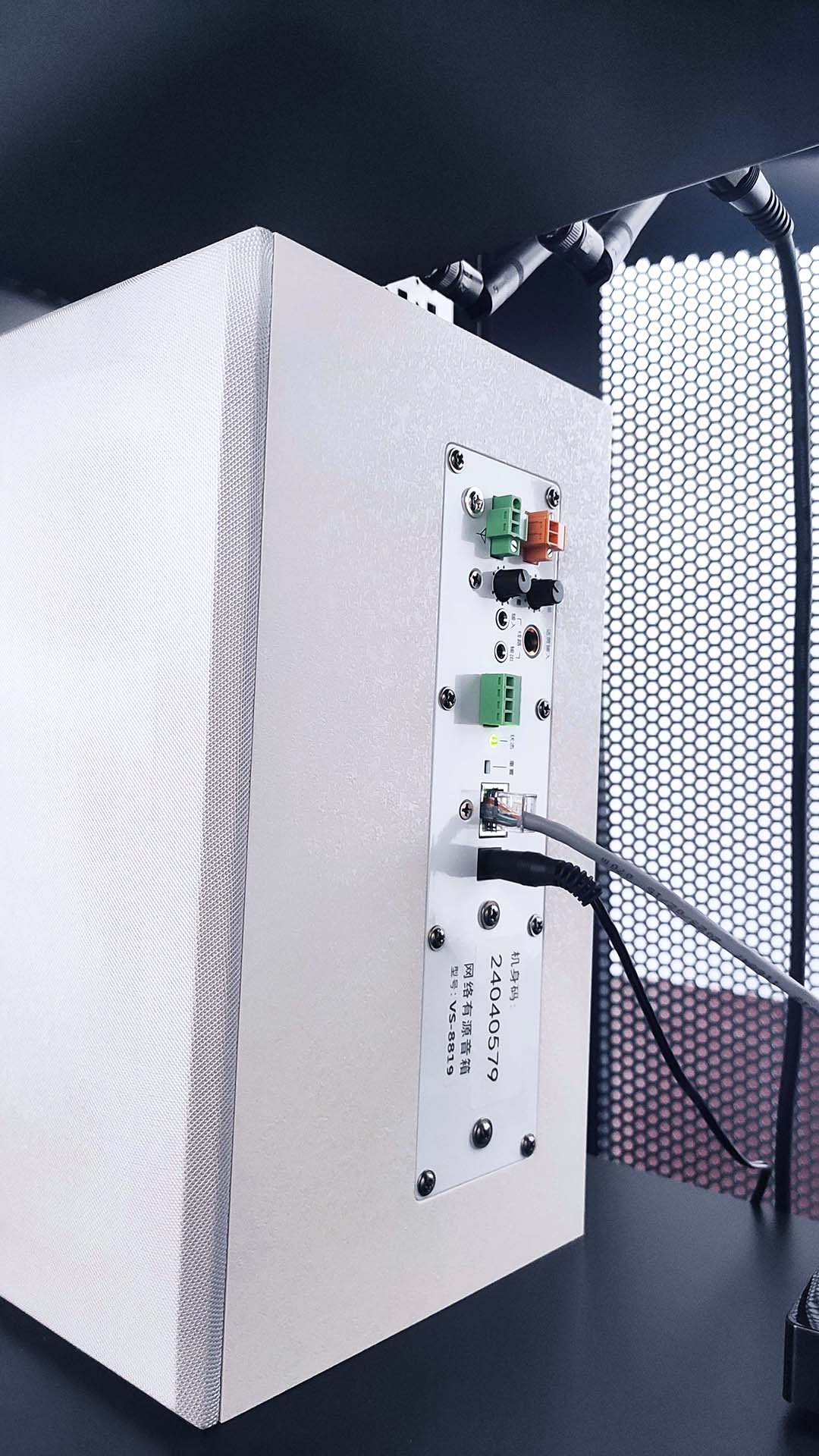 根據(jù)學(xué)校需求,惠聲專業(yè)設(shè)計了一套廣播系統(tǒng)設(shè)計為IP網(wǎng)絡(luò)廣播系統(tǒng)。充分利用校園網(wǎng),通過軟件設(shè)置系統(tǒng)既可全校范圍內(nèi)統(tǒng)一集中控制管理,又有各區(qū)域獨立控制管理,能夠滿足靈活分區(qū)分組。校園廣播系統(tǒng)音源包括數(shù)字音源和模擬音源兩部分。系統(tǒng)主要使用計算機(jī)、DVD播放機(jī)、播音話筒、無線話筒等。設(shè)計安裝30W壁掛木質(zhì)數(shù)字網(wǎng)絡(luò)音箱,可實現(xiàn)教室音響的一對一控制;目前教學(xué)部共36間教室,共需36只數(shù)字網(wǎng)絡(luò)音箱。該音箱具有音頻信號的輸入端口,教室內(nèi)采用臺式電腦或筆記本進(jìn)行教學(xué)時,電腦輸出的聲音可通過該音箱進(jìn)行擴(kuò)音輸出。為使教室內(nèi)聲音飽滿,設(shè)計給每間教室安裝一只網(wǎng)絡(luò)音箱副箱(GM-8001A),兩只音箱的安裝分布在教室的黑板兩側(cè)。室外體育運動操場區(qū)以及升國旗區(qū):根據(jù)功能區(qū)域的劃分,規(guī)劃2個獨立的廣播區(qū)域,操場區(qū)域設(shè)計安裝6只120W室外防水音柱,配備2臺網(wǎng)絡(luò)功放機(jī),1套一拖二無線話筒。升旗臺區(qū)域設(shè)計安裝5只120W室外防水音柱,配備2臺網(wǎng)絡(luò)功放機(jī),1套一拖二無線話筒。