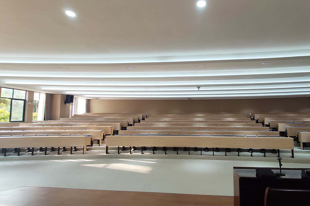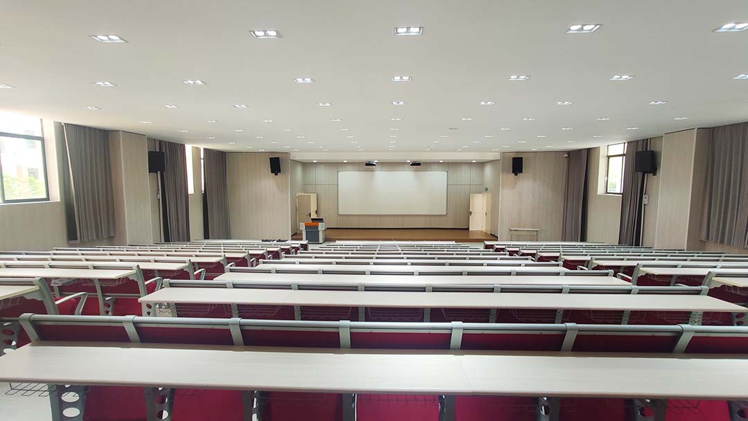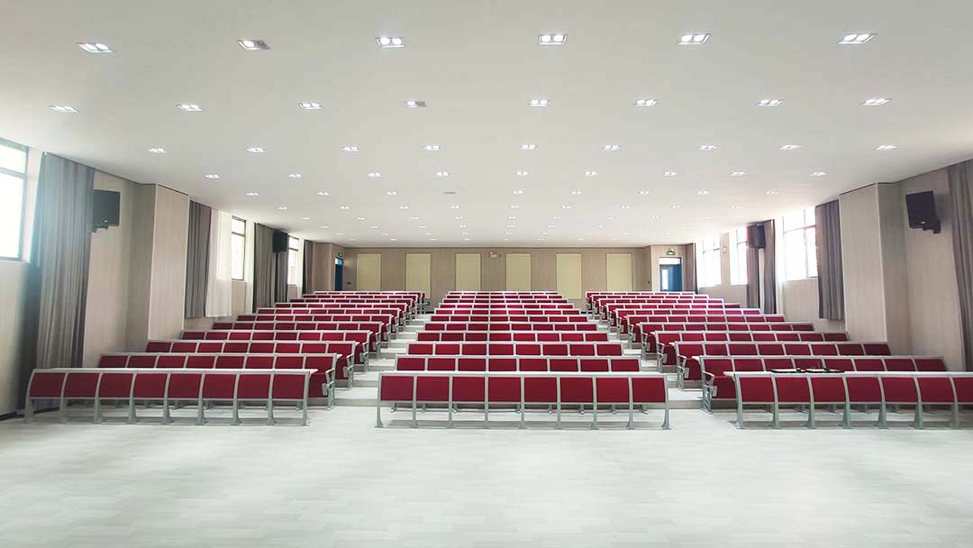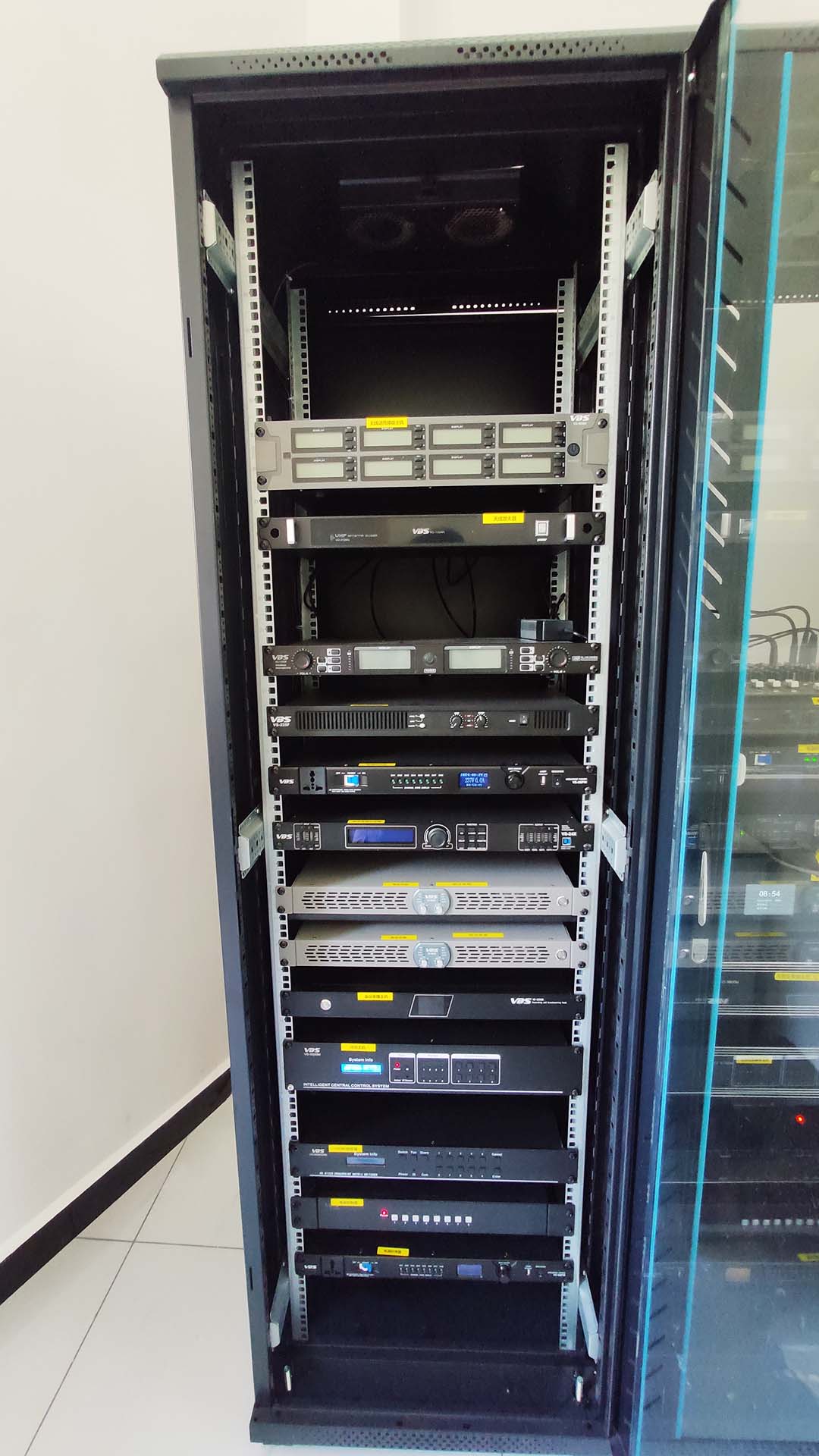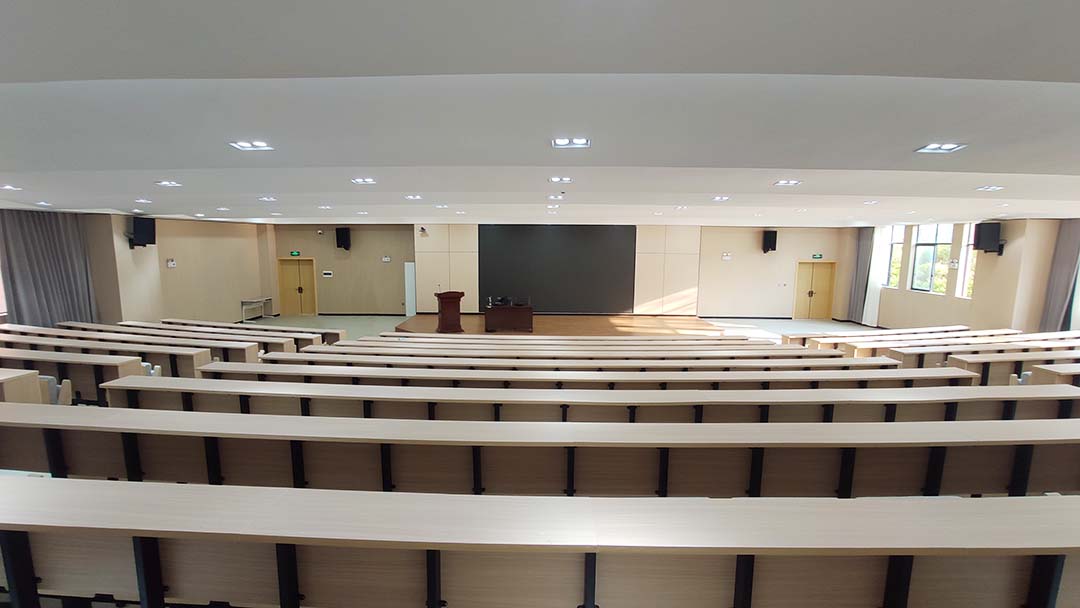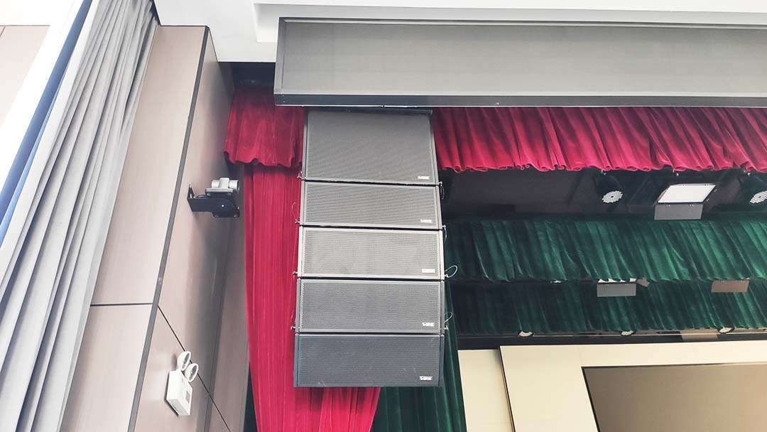 根據(jù)學院需求,惠聲專業(yè)設計的報告廳現(xiàn)場音響采用明裝壁掛式,種類包括主擴、輔助環(huán)繞、舞臺低音以及舞臺返聽,保證聲音輻射范圍全面覆蓋,做到美觀大方。主擴采用1+4雙8寸線陣組合,調(diào)音臺采用了多路編組調(diào)音臺,多路編組輸出可分出音源實可供給遠程視頻會議、錄音機、刻錄機等等設備。麥克風選用VS-1302M真分集主機,配備手持、頭戴等多種類型。外加天線放大器極大地延長了話筒的傳輸距離。另外還在報告廳設計了智能集中控制系統(tǒng),集合了聲、光、電于一體的掌上控制系統(tǒng),使用者可通過平板上面的按鍵實現(xiàn)燈光明亮、電動窗簾、空調(diào)開關(guān)、電視機開關(guān)、聲音大小等等。諸多設備不僅豐富了該空間的裝飾,同時添加了更多可視化的操作,讓報告廳的使用變得更佳智能化。同時該報告廳配置了3個機位的攝像頭,配合錄播主機可無死角記錄報告廳實況。