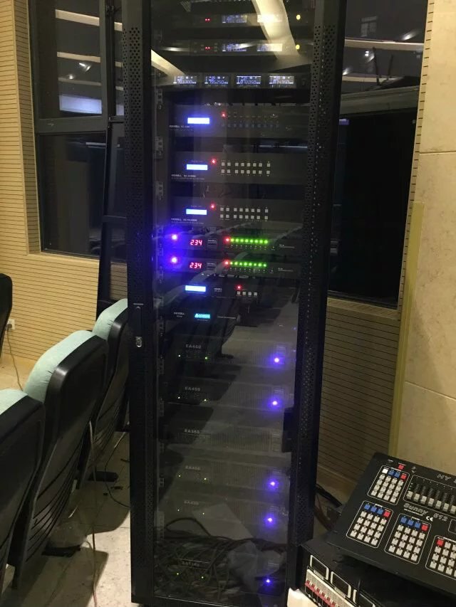 擴(kuò)聲系統(tǒng)搭配中控系統(tǒng)使用,使得報告廳的音頻控制,視頻信號切換,燈光電源控制等,實現(xiàn)了集中化、智能化的一套控制系統(tǒng)。