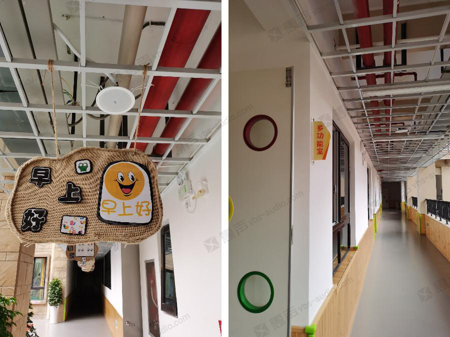 惠聲的智能廣播系統(tǒng)覆蓋幼兒園不同區(qū)域,滿足幼兒園各類教學活動和會議的開展,并按照實際情況在不同區(qū)域配置不同尺寸功率的音箱,各個區(qū)域互不干擾。