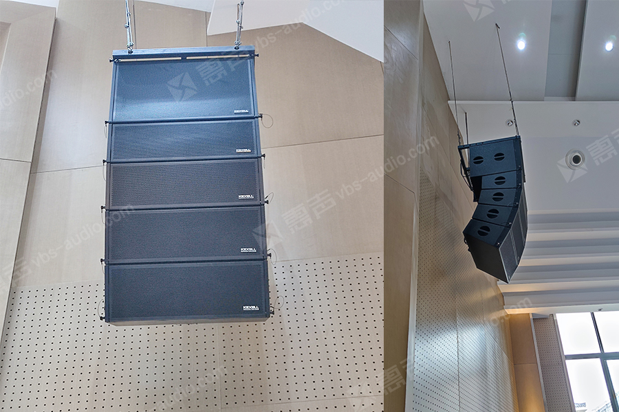整個多功能會議室,音箱方面分別采用了雙八寸線陣、雙十八低音、輔助音箱和返聽音箱,保證足夠的聲壓級。經(jīng)計(jì)算,完工后的會議室內(nèi)的聲壓級應(yīng)該完全可以達(dá)到國家一級廳堂的指標(biāo)要求。根據(jù)觀眾區(qū)的具體位置和面積,計(jì)算揚(yáng)聲器的覆蓋范圍,設(shè)計(jì)所選的揚(yáng)聲器都是恒指向揚(yáng)聲器,有利于提高語言清晰度,達(dá)到良好的聲場均勻度。