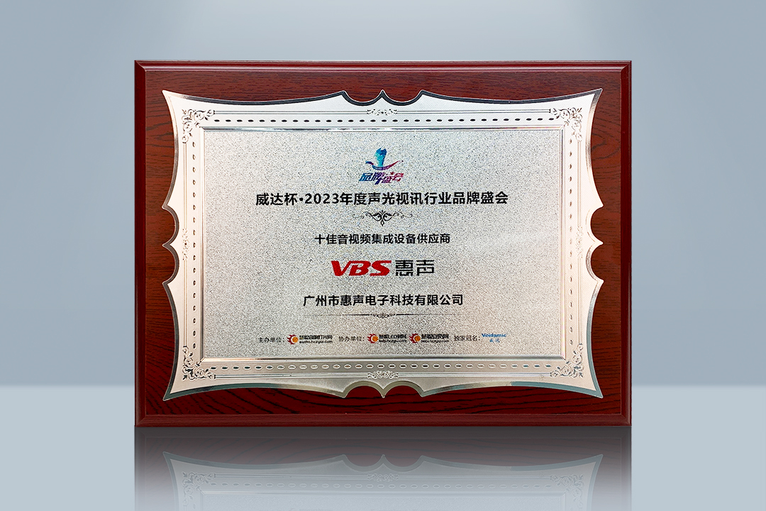 十六年風雨征程,廣州惠聲始終專注于音視頻行業(yè)研發(fā)與創(chuàng)新,始終堅持為客戶提供最優(yōu)質(zhì)的解決方案和服務(wù)。VBS惠聲品牌也獲得了慧聰音響燈光網(wǎng)及行業(yè)權(quán)威專家、全國工程商的廣泛認可,并榮獲“2023年度十佳音視頻系統(tǒng)解決方案品牌”榮譽。