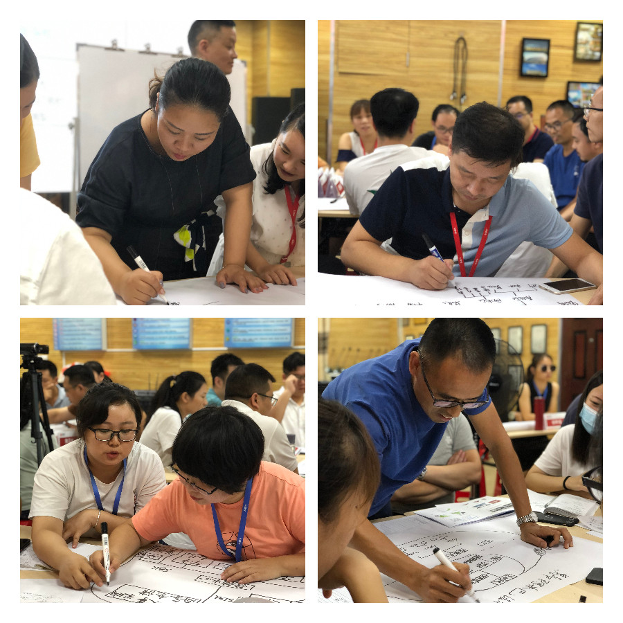 進(jìn)入培訓(xùn)環(huán)節(jié)后,和英阿米巴商學(xué)院執(zhí)行院長(zhǎng)詹從淼老師根據(jù)團(tuán)隊(duì)情況,設(shè)立課堂禮儀和課堂規(guī)則,讓參會(huì)人員能有效地積極地參與進(jìn)來,在參與、合作、PK的愉快氛圍中模擬實(shí)戰(zhàn)阿米巴。